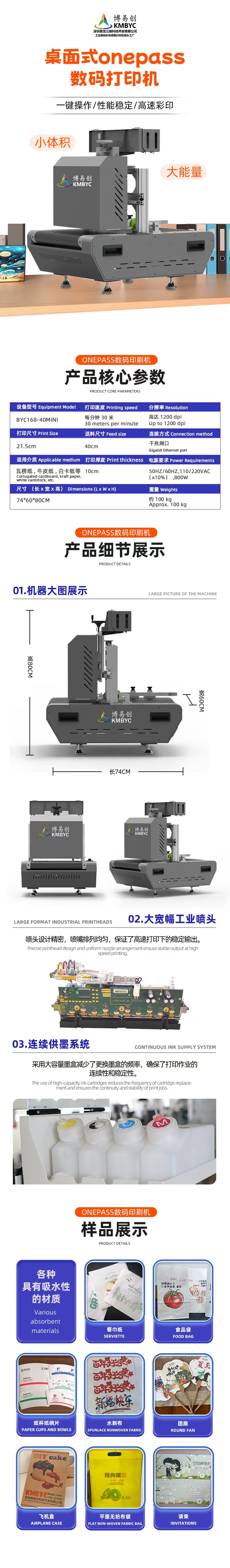 產品介紹:博易創餐巾紙打印機采用惠普品牌噴頭。產品打印尺寸21.5cm,進料尺寸40cm。不需要制版就能打印餐巾紙,打印成本不到1分錢一張,節省了大量的時間成本和耗材成本。適用于小批量生產餐巾紙廠家.